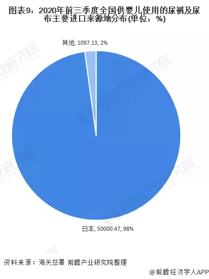 由于“供嬰兒使用的尿褲及尿布,任何材料制”占據(jù)主要比重,從我國主要進(jìn)口此類一次性衛(wèi)生用品主要來源地看,我國絕大部分產(chǎn)品主要向日本進(jìn)口,比例達(dá)到98%。
