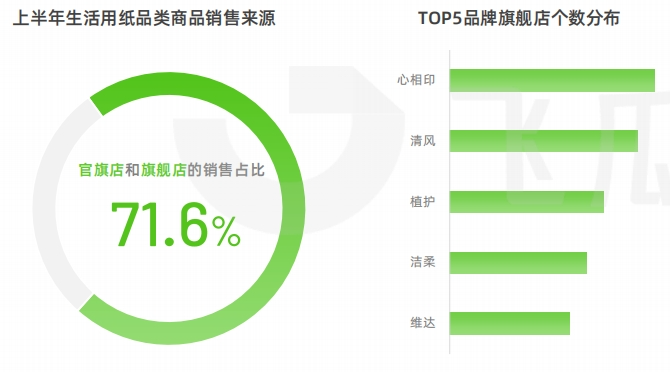 可以看到,2023上半年生活用紙的銷售來源中,旗艦店與官方旗艦店的銷售占比高達(dá)71.6%;品牌們通常會(huì)圍繞產(chǎn)品線或細(xì)分人群進(jìn)行店鋪矩陣搭建,進(jìn)而開展有針對(duì)性的營(yíng)銷,以增加轉(zhuǎn)化幾率。