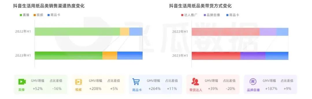 同時(shí),品牌自播也成為了生活用紙品牌日常經(jīng)營(yíng)的一環(huán):2023上半年生活用紙的銷售額中,品牌自播號(hào)產(chǎn)生的銷售額較去年同期增長(zhǎng)187%,占比提升9%。