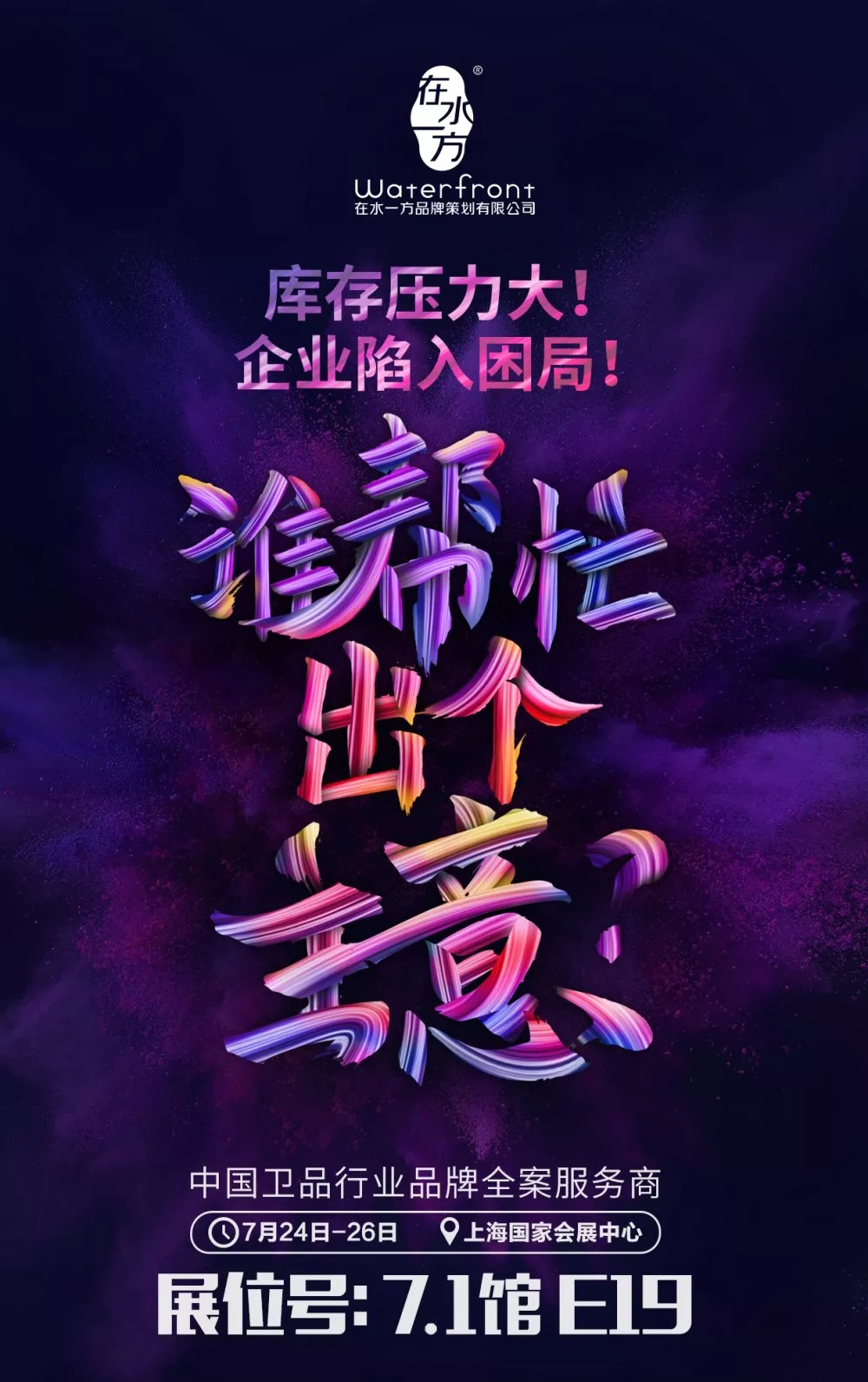 7月24日到26日,如果你剛好有空,在水一方誠意邀你到上海國家會(huì)展中心7-1E19展位坐坐,一同交流行業(yè)觀點(diǎn),碰撞創(chuàng)意,展望新機(jī)。